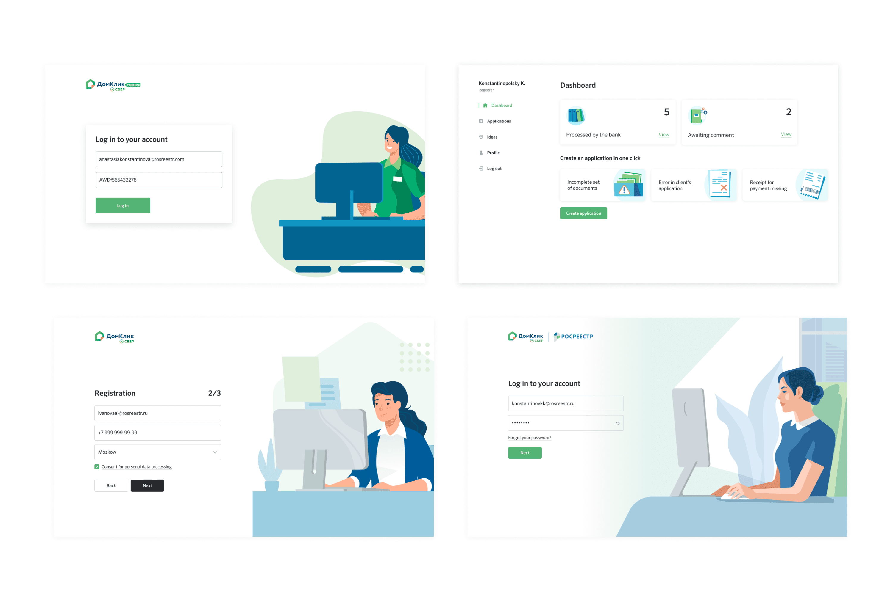 A key part of this project was communicating with the illustrator to create a unique style. I wanted the interface to be easy to understand without onboarding because Rosreestr's staff serve many people. Together with the illustrator, we thought about the best associations with the interface, which we then turned into illustrations.