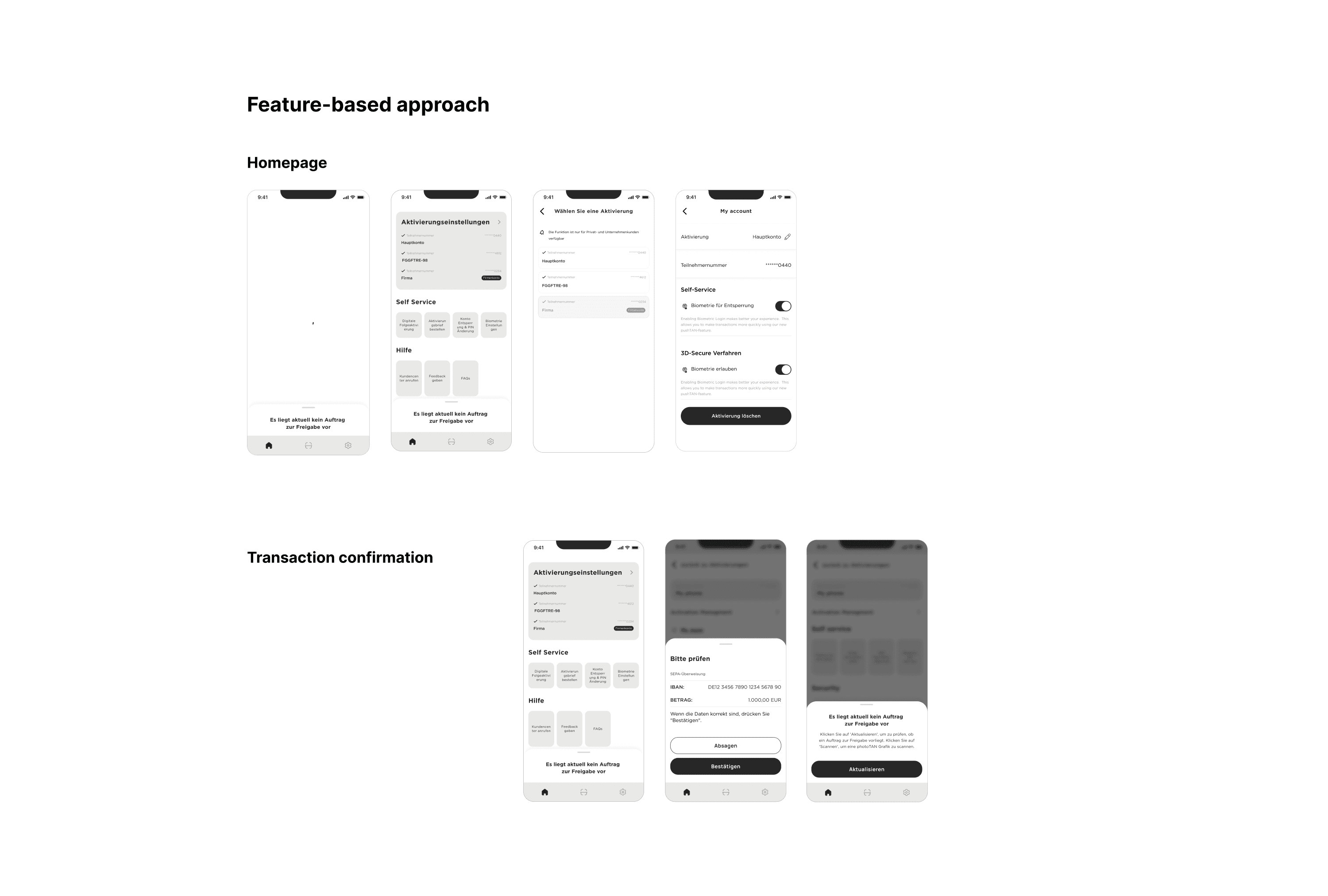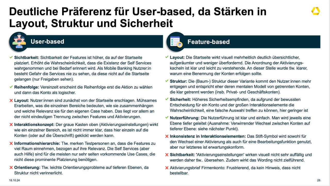 📌 This excerpt from the UX lab report shows a clear preference for the Feature-Based approach. Users appreciated its clearer layout, well-structured navigation, and improved sense of security when selecting accounts. The feedback confirmed that this approach made the app more user-friendly and intuitive.