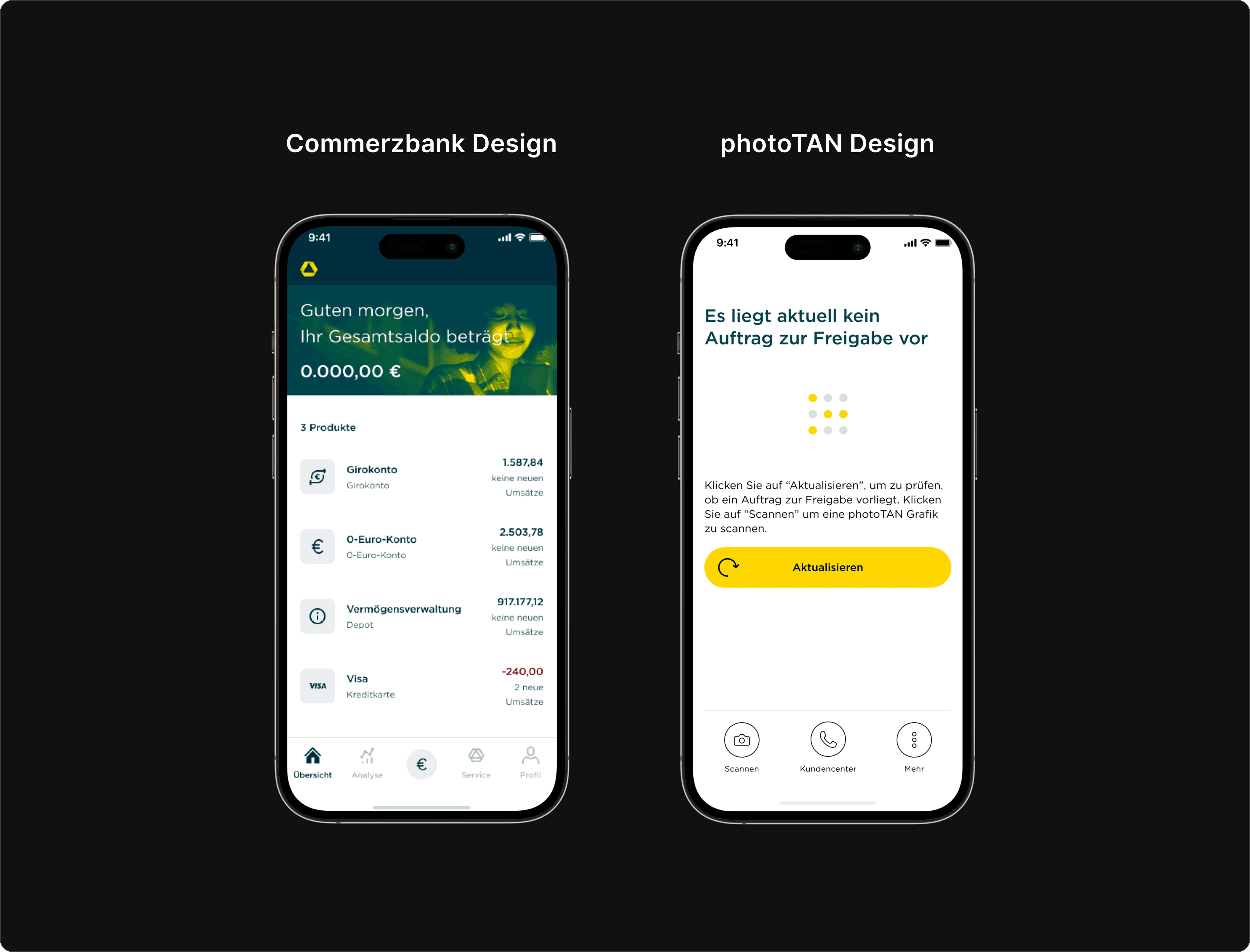 After choosing the approach, I moved on to the visual part. During my research and collaboration with the bank’s internal team, I discovered that the photoTAN design system hadn't been updated in over 5 years, while the main banking app had a completely different look. This inconsistency impacted user perception of the product and affected Commerzbank's brand image.